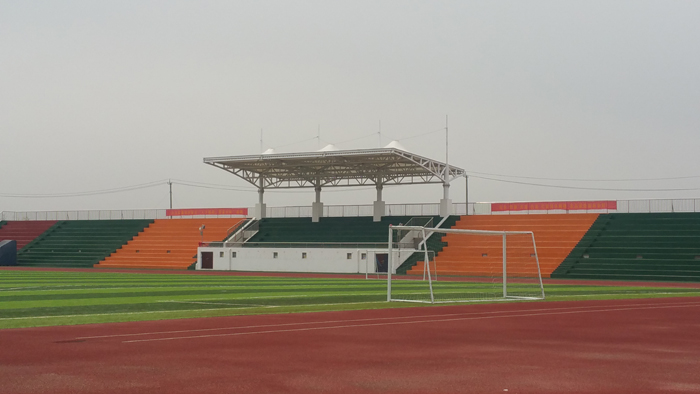 看臺上跑道、足球場全景
